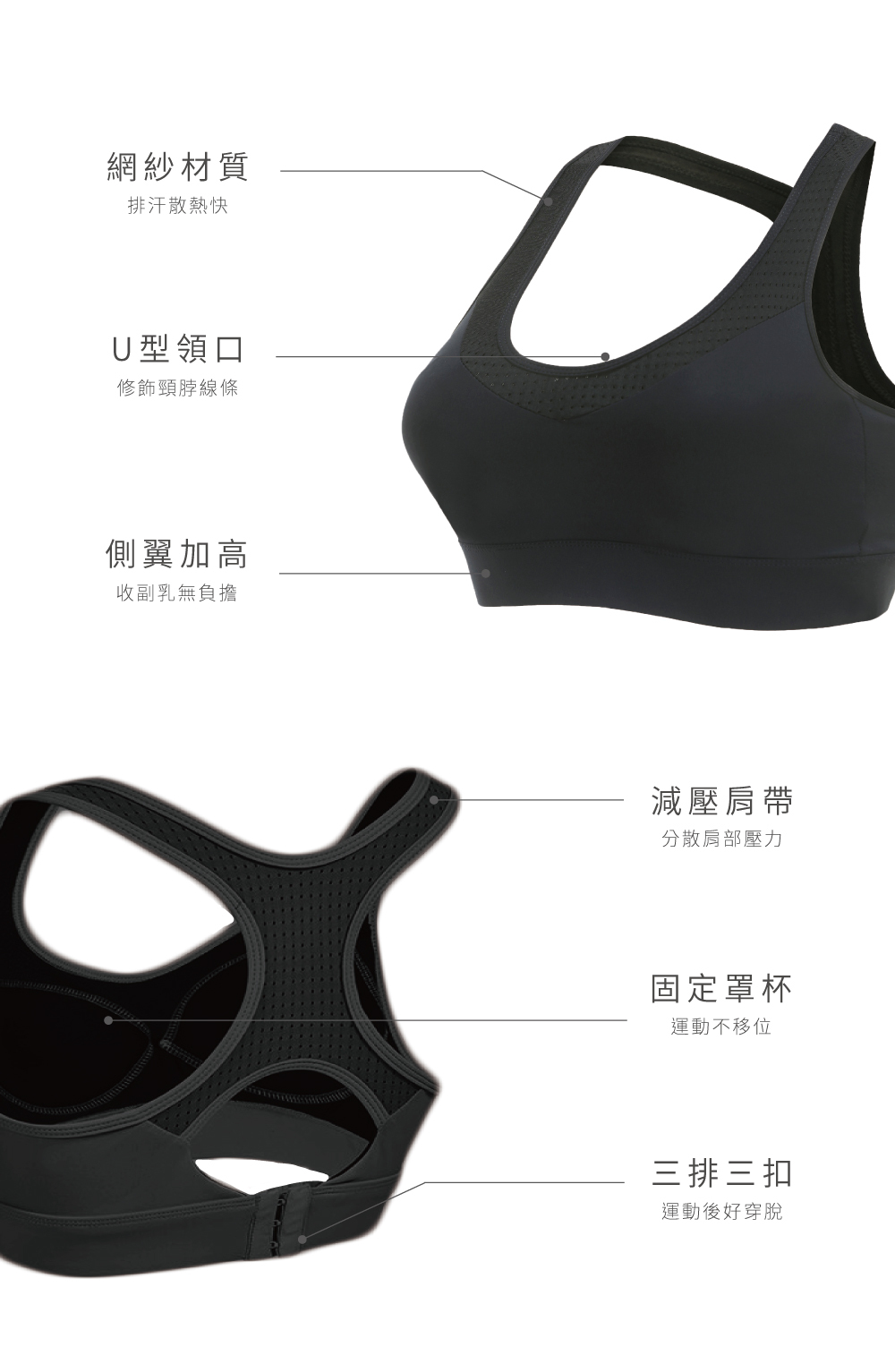 背後三排三扣,運動後穿脫更方便